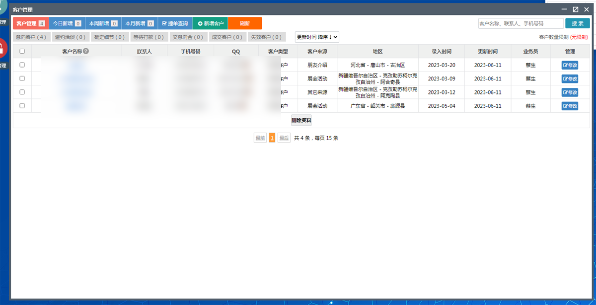 客戶關(guān)系管理系統(tǒng)(以下簡(jiǎn)稱(chēng):QXCRM)根據(jù)客戶多年的需求分析以及前期的開(kāi)發(fā)應(yīng)用,經(jīng)過(guò)不斷的調(diào)整更新,所研發(fā)出來(lái)的一套系統(tǒng),系統(tǒng)操作簡(jiǎn)單使用,去除多余無(wú)效功能,能更方便的管理企業(yè)手中的客戶資源,幫助企業(yè)高效率管理客戶資料,優(yōu)化業(yè)務(wù)協(xié)同關(guān)系,合理的給每個(gè)銷(xiāo)售業(yè)務(wù)員分配資源,采集客戶數(shù)據(jù),及時(shí)跟進(jìn)了解客戶的進(jìn)度情況,從分配,跟單,合同,訂單,售后等一系列流程,更好的管理客戶信息,即使公司員工離職,客戶數(shù)據(jù)依然會(huì)保留,不會(huì)輕易丟失。做到“操作簡(jiǎn)單上手,有效積累客戶,高效團(tuán)隊(duì)合作,提升銷(xiāo)售業(yè)績(jī),專(zhuān)業(yè)數(shù)據(jù)分析”,對(duì)于中小企業(yè)來(lái)說(shuō),是個(gè)非常實(shí)用的管理系統(tǒng)。