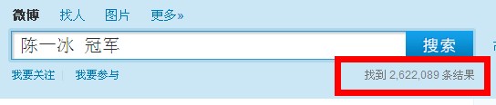 相信廣大新聞媒體通過文稿形式向我們傳遞著這樣一種信息,那就是“陳一冰是冠軍,應(yīng)該獲得金牌”,大家看以下截圖,是在新浪博客搜索中看到的,可以看到,一個事件,有“30134”篇文章出現(xiàn)。
