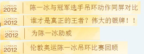 在這張圖中,騰訊的專題做的挺到位的,title:" 陳一冰完美表現(xiàn)意外摘銀_騰訊奧運_騰訊網(wǎng)",其中在專題中,用四個板塊分別詮釋了陳一冰這次奧運之旅的過程,以及這些被黑事件的一下質(zhì)疑,如同,