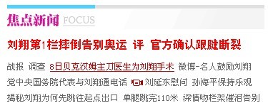 最新消息:劉翔官方確認(rèn)跟腱斷裂 騏秀科技預(yù)祝翔飛人手術(shù)成功,養(yǎng)好身體再戰(zhàn)2016。
