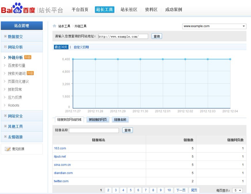4、增加網(wǎng)站外鏈的曲線圖展示,更清晰的查看網(wǎng)站外鏈情況。