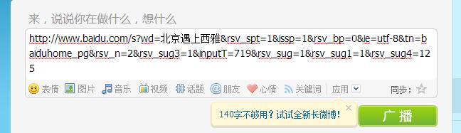 新浪短網(wǎng)址,主要是借助于新浪微博,如何實現(xiàn)呢,其實很簡單,在發(fā)布微博的消息框里面輸入我們要推廣的鏈接URL,如圖7,再點擊發(fā)布,就可以生成新浪短網(wǎng)址了,如圖8。