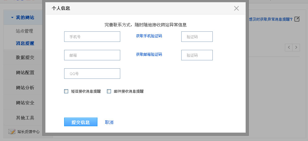 為了解決上述問(wèn)題,百度站長(zhǎng)平臺(tái)2013年重磅推出網(wǎng)站消息提醒工具,能夠及時(shí)告知網(wǎng)站的異常問(wèn)題及原因,幫助站長(zhǎng)高效快速的解決網(wǎng)站異常問(wèn)題。從今天開始,只要網(wǎng)站在站長(zhǎng)平臺(tái)上完成了驗(yàn)證,當(dāng)網(wǎng)站出嚴(yán)重的問(wèn)題時(shí),就會(huì)在消息提醒中顯示異常的信息。若您同時(shí)還在站長(zhǎng)平臺(tái)上完善聯(lián)系方式并訂閱了異常提醒內(nèi)容,就可通過(guò)郵箱或者短信等途徑及時(shí)獲得百度站長(zhǎng)平臺(tái)的異常提醒。