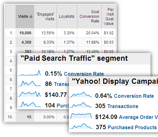 在網(wǎng)站分析工具中配置確認(rèn)好的目標(biāo)及目標(biāo)價(jià)值。如果這是一個(gè)電商網(wǎng)站,建議還可配置一個(gè)高價(jià)值用戶(訂單價(jià)值大于網(wǎng)站平均訂單價(jià)值的50%)的細(xì)分群組。分析他們的行為模式(來自哪些地區(qū)、廣告活動(dòng)或關(guān)鍵字等),他們?cè)诰W(wǎng)站上的行為怎么樣(看了哪些內(nèi)容、發(fā)生了哪些互動(dòng)事件),最終購買了哪些產(chǎn)品(購物車分析等)。