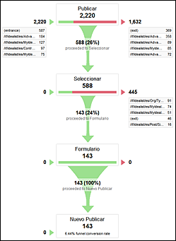 渠道轉(zhuǎn)化報(bào)告,也就是我們常說的漏斗報(bào)告,很好地描述了用戶在目標(biāo)達(dá)成過程中的轉(zhuǎn)化與放棄的情況。網(wǎng)頁的內(nèi)容有沒有足夠的說服力,能否引導(dǎo)用戶順利地達(dá)成轉(zhuǎn)化或購買商品,我們可以從這份報(bào)告中看出一些端倪。