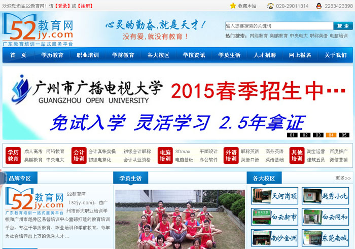 52教育網(wǎng)(52jy.com),由廣州市僑大職業(yè)培訓(xùn)學(xué)校和廣州市越秀區(qū)易普培訓(xùn)中心重磅打造的教育培訓(xùn)平臺(tái),專注于學(xué)歷教育、職業(yè)培訓(xùn)和學(xué)前教育,每年為社會(huì)培養(yǎng)出上萬(wàn)的優(yōu)秀人才...