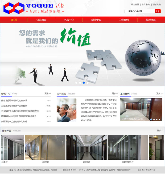 2015年5月10日,騏秀科技簽約廣州沃格裝飾工程有限公司網(wǎng)站建設(shè)(www.vogueofficezs.com),為其完成網(wǎng)站建設(shè)。